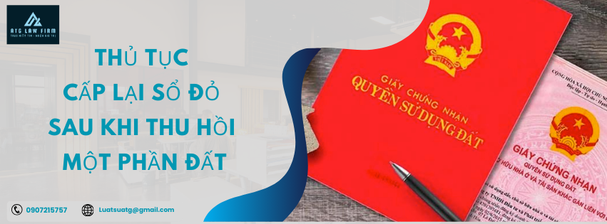 Căn cứ Điều 37, Điều 60 Nghị định 43/2014/NĐ-CP, khoản 40 Điều 1 Nghị định 01/2017/NĐ-CP, khoản 5 Điều 1 Nghị định 10/2023/NĐ-CP và điểm I, khoản 2 Điều 61 Nghị định 43/2014/NĐ-CP, sửa đổi tại khoản 40 Điều 1 Nghị định 01/2017/NĐ-CP quy định trình tự, thủ tục cấp lại sổ đỏ sau khi thu hồi một phần diện tích đất như sau:
